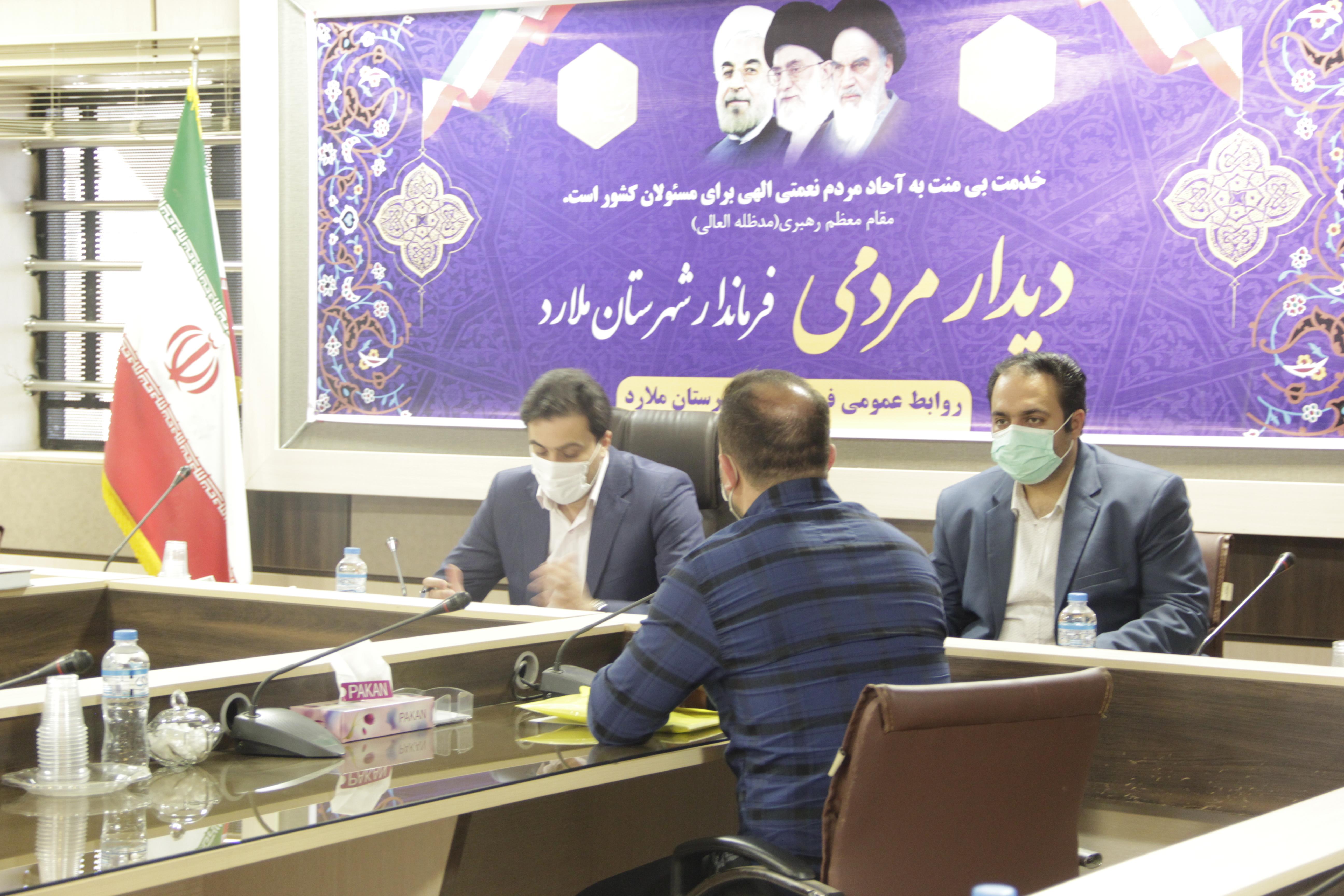 فرماندار ملارد در این دیدار ضمن استماع مطالبات و درخواست های مردمی نسبت به رفع آنها دستورات لازم را به ادارات و دستگاههای ذیربط صادر نمود.